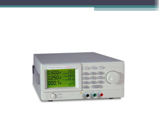 El documento describe conceptos básicos de electricidad y electrónica, incluyendo corriente eléctrica, tensión, resistencia, ley de Ohm, corriente continua y alterna. También describe elementos como baterías, interruptores, polímetros analógicos y digitales y fuentes de alimentación, que son componentes fundamentales en circuitos eléctricos y electrónicos.