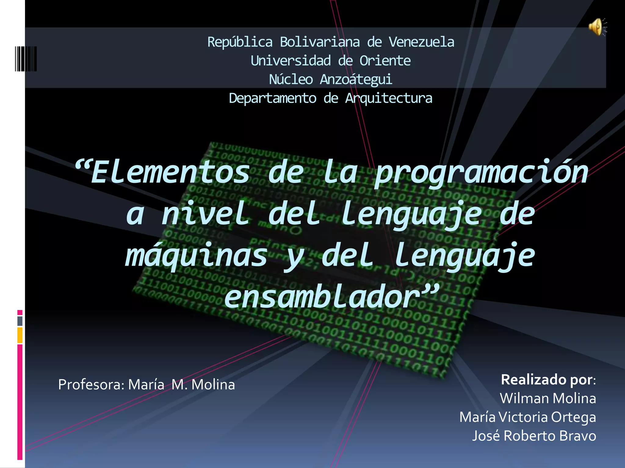 Este documento presenta una introducción a los lenguajes de programación a nivel de máquina y ensamblador. Explica brevemente la historia y uso de los lenguajes de programación, y clasifica los lenguajes en generaciones y niveles. También discute la importancia del lenguaje ensamblador y enumera las ventajas y desventajas de los lenguajes de programación de bajo nivel.