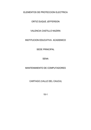 El breaker es un dispositivo que interrumpe el circuito eléctrico cuando la corriente excede un valor determinado o cuando hay un cortocircuito para evitar daños. Un regulador mantiene una tensión constante a la salida a pesar de variaciones en la entrada. Un UPS incluye baterías que alimentan los dispositivos conectados en caso de corte eléctrico usando un rectificador, inversor y conmutador.