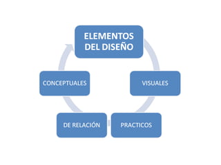 El documento habla sobre conceptos abstractos como la forma, el color, la dirección y la figura. Explica que la forma no existe físicamente pero tiene posición y está limitada por líneas o planos, y que define los límites de un volumen. También menciona que el color y las características de superficie distinguen una forma de sus alrededores, y que la ubicación e interrelación de las formas transmiten un mensaje en el diseño.