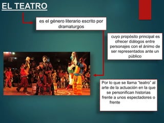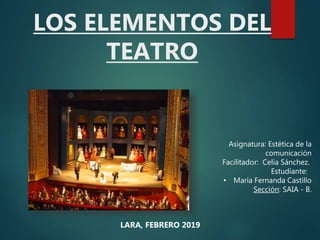 Este documento describe los elementos básicos y complementarios del teatro. Los elementos básicos son el actor, el texto y la audiencia. Los elementos complementarios incluyen el vestuario, maquillaje, escenografía, iluminación, sonido y el director.