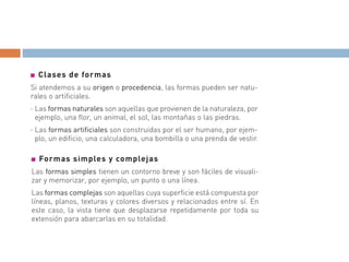 Este documento describe los elementos fundamentales de la tridimensionalidad. Explica que el mundo es tridimensional con longitud, anchura y profundidad, lo que permite múltiples puntos de vista, a diferencia del mundo bidimensional. Luego detalla los elementos conceptuales, visuales y de relación que componen la creación tridimensional, incluyendo forma, tamaño, color, textura, posición y espacio. Finalmente, propone un proyecto para estudiar cómo se transforman estos elementos visuales en un objeto tridimensional a través de cambios expresivos.