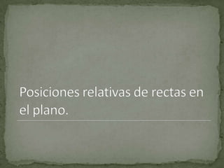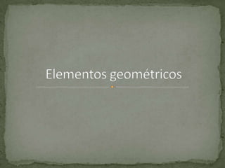 El documento define conceptos básicos de la geometría como puntos, rectas, planos, ángulos y circunferencias. Explica que un punto indica una posición, una recta está formada por puntos infinitos, y un plano por rectas infinitas. También describe elementos como segmentos, semirrectas, bisectrices y mediatrices, y sus relaciones.