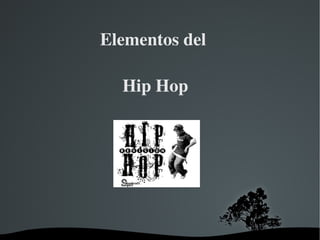 KRS One definió los cuatro elementos fundamentales del hip hop como el rapping, el turntablism, el breakdancing y el graffiti. Sin embargo, existen otras manifestaciones como el beatboxing, los murales y el streetball que también forman parte integral de la cultura hip hop. El rap surgió de la unión del rapping y el turntablism. El breakdancing, también conocido como bboying, es el baile asociado con el hip hop. El graffiti es la rama artística pictórica aplicada a superficies urbanas que ha influido en otros est