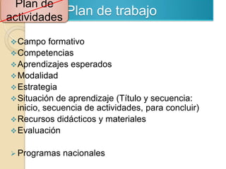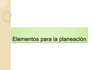 Este documento presenta los elementos para planear las actividades educativas en un jardín de niños. Incluye secciones para el plan de actividades, competencias, aprendizajes esperados, estrategias, recursos y evaluación. También incluye un cronograma semanal detallado con las actividades planeadas para cada día de la semana, así como elementos de encabezado requeridos.