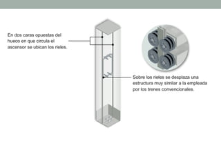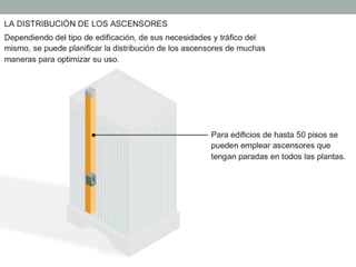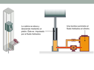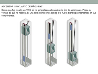 Los elevadores son sistemas de transporte vertical diseñados para mover personas u objetos entre diferentes niveles. Existen elevadores residenciales, comerciales e industriales. Los principales tipos son los elevadores electromecánicos, que usan motores eléctricos, y los hidráulicos. Los elevadores proporcionan movilidad vertical de forma segura, pero requieren mantenimiento y pueden afectar la salud si no se usan con moderación.