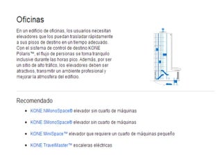 Este documento describe diferentes tipos de elevadores, incluyendo elevadores de cabina completa, elevadores de media cabina, elevadores de tracción, elevadores hidráulicos, elevadores hidrocables y elevadores con sistema de arrollamiento de cable. Cada tipo se adapta a diferentes espacios y necesidades de capacidad y distancia de viaje.