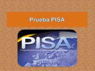 El documento habla sobre el Programa Internacional de Evaluación de Estudiantes (PISA), una prueba estandarizada aplicada cada tres años desde 1997 a estudiantes de 15 años en más de 60 países. PISA evalúa competencias en matemáticas, ciencias y lectura con el fin de que los resultados sean utilizados para mejorar las políticas educativas y permitir a los estudiantes desarrollar habilidades para la vida. México se incorporó al programa en el año 2000 y nuevamente se aplicará la prueba en 2012.