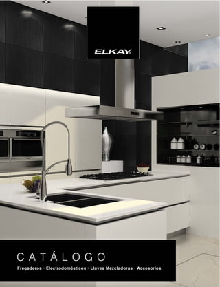 El documento presenta la historia de Elkay, una empresa familiar con 90 años de tradición en fabricación de productos de cocina innovadores, enfocándose en fregaderos y otros electrodomésticos. Destaca la introducción de fregaderos con sistema Perfect Drain, opciones más profundas para mayor capacidad, llaves mezcladoras, campanas extractoras de diseño europeo y parrillas de inducción que ofrecen seguridad y eficiencia energética. Elkay se compromete a diseñar productos que satisfacen las necesidades cambiantes de sus clientes, combinando durabilidad y estética en acero inoxidable.