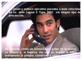 Un ejecutivo conducía rápidamente su auto nuevo cuando un ladrillo golpeó la puerta. Furioso, regresó y confrontó a un niño que lo había lanzado, pero el niño le explicó que lo hizo para llamar la atención y pedir ayuda porque su hermano en silla de ruedas se había caído y no podía levantarlo. Conmovido, el ejecutivo ayudó al hermano y aprendió que a veces Dios usa métodos inesperados para llamar nuestra atención y recordarnos prestar