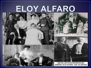 José Eloy Alfaro Delgado fue un militar y político ecuatoriano que lideró la Revolución Liberal ecuatoriana en 1895, derrocando al gobierno conservador. Fue presidente de Ecuador en dos períodos (1897-1901 y 1906-1911). Sus políticas laicistas separaron a la iglesia del estado, extendieron las libertades y derechos civiles, y establecieron un sistema educativo público y laico. Sin embargo, fue asesinado por sus opositores conservadores en 1912. La Revolución Liberal transformó significativamente la