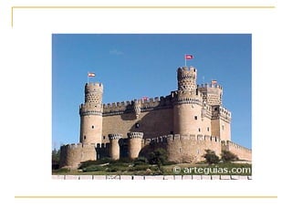 El documento describe los castillos medievales. Los castillos eran fortalezas y hogares donde vivían los reyes, príncipes y nobles con sus familias y sirvientes. Contenían soldados para defender el castillo y las tierras circundantes. Los castillos se construían en lugares altos para una mejor vigilancia. Un equipo de artesanos como canteros, albañiles, carpinteros y herreros trabajaban bajo la dirección de un maestro de obras para construir las diferentes partes de un castillo como torres, muros y puert