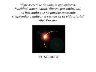 El documento resume el secreto detrás del éxito y la felicidad de grandes figuras históricas: la Ley de la Atracción. Esta ley establece que uno atrae hacia sí lo que piensa y siente. Al enfocarse en pensamientos y sentimientos positivos como la gratitud y la visualización de metas, uno puede atraer riqueza, salud y todo lo que desea a su vida. El secreto es que uno crea su propia realidad a través de sus pensamientos.