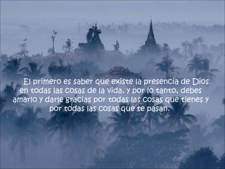 El documento describe 7 pasos para lograr la felicidad: 1) Amar y dar gracias a Dios, 2) Tener autoestima y afirmar tus cualidades diariamente, 3) Poner en práctica tus capacidades, 4) No envidiar a otros, 5) Perdonar y olvidar sin rencor, 6) No tomar lo que no te pertenece, 7) Respetar a los demás y levantarse con una sonrisa ayudando a los demás.