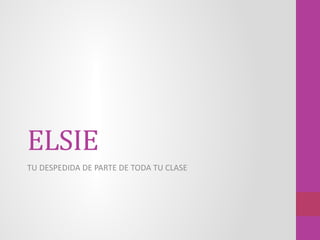 Elsie se despide de su clase, quienes le expresan que la extrañarán y nunca la olvidarán. Sus compañeros de clase le dedican unas palabras de despedida para mostrarle lo mucho que la apreciaban.