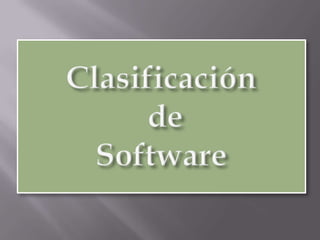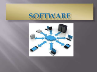 El documento define y explica los diferentes tipos de software: el software de sistema que permite la interacción entre los componentes físicos y las aplicaciones de un sistema informático; el software de desarrollo que incluye herramientas para programadores; y las aplicaciones que permiten a los usuarios realizar tareas específicas en diferentes campos como ofimática, educación, negocios, entretenimiento y medicina.