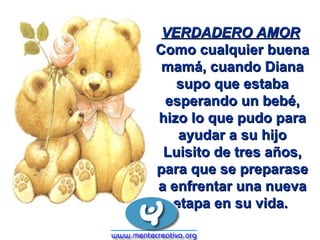 Luisito, de 3 años, estaba emocionado por la llegada de su hermanita. Cuando ella nació en malas condiciones y fue llevada a cuidados intensivos, su condición empeoró. A pesar de las pocas esperanzas, Luisito insistió en cantarle. Su mamá lo llevó escondido y él cantó canciones de amor. Su canto pareció mejorar a la bebé, relajándola y haciéndola dormir. Al día siguiente, se encontraba casi bien para irse a casa, en lo que los doctores llam