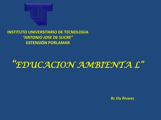 El documento trata sobre la educación ambiental en el Instituto Universitario de Tecnología "Antonio José de Sucre" en Porlamar. Propone una educación que promueva el cuidado y respeto por el medio ambiente a través de la enseñanza, la investigación y la extensión. Busca generar conciencia sobre la importancia de vivir en armonía con la naturaleza.