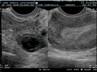 El documento resume la definición, frecuencia, etiología, cuadro clínico, diagnóstico y hallazgos ecográficos del embarazo ectópico. Define el embarazo ectópico como la implantación anormal del embarazo fuera de la cavidad uterina, con una frecuencia del 0.5-1% de todos los embarazos. Describe los principales factores de riesgo como cirugía tubaria previa, infecciones genitales y uso de DIU. Explica los síntomas como dolor abdominal, sangrado y mas