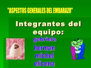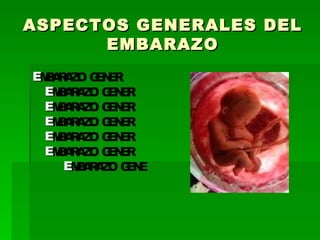 El documento resume las etapas clave del embarazo, incluyendo la fecundación, el desarrollo del embrión semana a semana, y el crecimiento del feto mes a mes hasta el nacimiento. También describe los diagnósticos probables y definitivos del embarazo y las indicaciones que el médico puede dar a la paciente, como cuidar la nutrición, seguir hábitos higiénicos y estar alerta a posibles complicaciones.