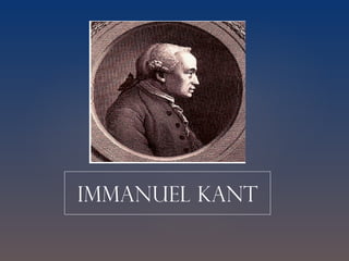 Este documento presenta un resumen biográfico e intelectual de Immanuel Kant y su filosofía trascendental. Kant nació en 1724 en Königsberg y se dedicó a la enseñanza y escritura filosófica. Desarrolló una filosofía crítica que examinó los límites y condiciones de posibilidad del conocimiento humano. Publicó obras fundamentales como la Crítica de la Razón Pura y estableció distinciones como la entre fenómeno y noumeno. Kant también analizó la raz