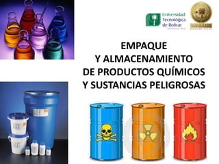 Este documento proporciona definiciones y lineamientos sobre el almacenamiento y empaque seguros de productos químicos y sustancias peligrosas. Explica conceptos como materiales peligrosos, combustibles, combustión e incompatibilidad. Además, ofrece recomendaciones básicas para reducir riesgos como reducir el stock al mínimo, establecer separaciones de sustancias incompatibles y aislar ciertos productos. Finalmente, introduce el Sistema Globalmente Armonizado de clasificación y etiquetado de productos qu