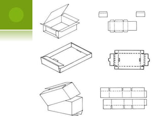 El documento trata sobre el empaque y embalaje de productos. Explica que originalmente se usaban elementos naturales como hojas y pieles para empacar, y que con el tiempo se adoptaron materiales como vidrio, cartón y plásticos. Describe las funciones del empaque como proteger el producto, presentarlo de forma atractiva y proveer información. También define términos como envase, empaque primario, secundario y terciario, y embalaje, y explica brevemente los principales materiales usados como madera y cartón corrugado.