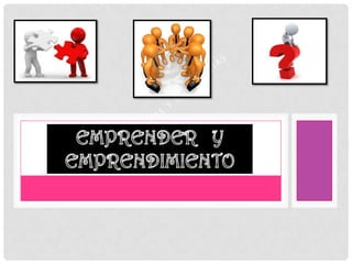 El documento explica las similitudes y diferencias entre emprender y emprendedor. Emprender se define como iniciar un proyecto a través de la identificación de ideas y oportunidades de negocio viables, mientras que un emprendedor es la persona que pone en marcha el proyecto por primera vez. Ambos comparten la búsqueda de metas a través de la planeación y las ideas, con el objetivo de desarrollar un gran proyecto que beneficie a otros. La única diferencia es que emprender se refiere al acto de iniciar el pro