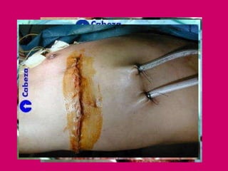 El documento describe el diagnóstico y tratamiento del empiema pleural. Explica que el diagnóstico requiere examen físico, hemocultivo, exámenes microbiológicos y de citoquímica del líquido pleural. Describe tres etapas del empiema y los tratamientos correspondientes: toracocentesis para la etapa exudativa, videotoracoscopia para la etapa fibrino purulenta, y decorticación quirúrgica o toracoplastia para la etapa de fibrosis.