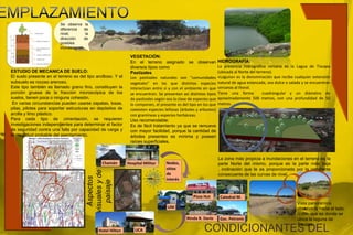 El documento proporciona información sobre la ubicación y características de un terreno ubicado frente a la Universidad Nacional de Ingeniería en Managua, Nicaragua. Se describen los límites, topografía, vegetación, servicios e infraestructura circundantes, así como los condicionantes legales y normativos que deben considerarse para el desarrollo de un proyecto en el sitio.