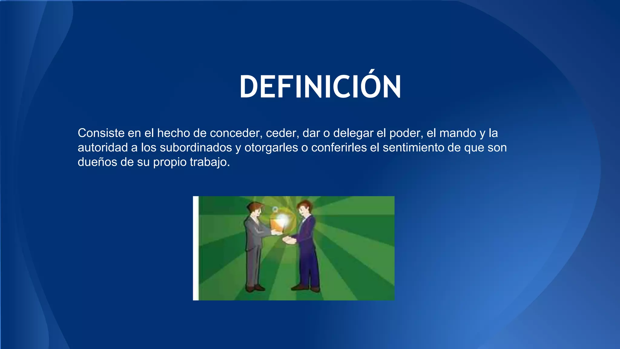 El documento define el empoderamiento como conceder poder y autoridad a los subordinados para que se sientan dueños de su trabajo. Se originó con Paulo Freire y consiste en asignar responsabilidades y autoridad a los empleados sobre sus tareas, definir estándares de calidad y brindar capacitación, información y retroalimentación. Existen tres tipos de empoderamiento: estructural, psicológico y organizacional.