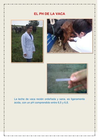 LA VACA La leche de vaca recién ordeñada y sana, es ligeramente ácida, con un pH comprendido entre 6,5 y 6,8.