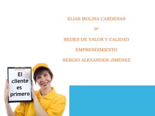 El documento habla sobre las redes de valor y calidad en el emprendimiento. Resalta la importancia de dejar a los clientes encantados para tener éxito en los negocios, ya que el éxito depende de los clientes. También menciona que tanto la calidad de los productos como la atención al cliente son importantes para satisfacer a los clientes. Algunas personas prefieren comprar en supermercados por la calidad, respaldo y atención que estos ofrecen. Finalmente, el documento hace referencia a los conceptos de cadena de valor y diferentes