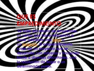 El documento define el emprendimiento y las empresas, y clasifica las empresas según su actividad (agropecuaria, minera, industrial, comercial, de servicios), propiedad (privada, oficial, mixta), tamaño (micro, pequeña, mediana, grande) y número de propietarios (individual, unipersonal, sociedades de personas y de capital, mixtas, sin ánimo de lucro).