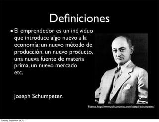 El documento describe las ventajas del emprendimiento para las personas y las naciones, así como los tipos de emprendimiento por necesidad y por visualización de oportunidades. También resume los esfuerzos de la Universidad Pontificia Católica Madre y Maestra (PUCMM) para fomentar una mentalidad emprendedora a través de cursos, una concentración en desarrollo de nuevos negocios e investigaciones sobre emprendimiento.