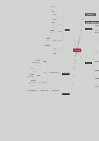Este documento describe las características y tipos de empresas. Define una empresa como una unidad económica de producción dirigida a la innovación que coordina la producción y asume riesgos. Las empresas se clasifican según su sector, tamaño, estructura, ubicación y ámbito de competencia. También se clasifican según su actividad principal (productiva, comercial o de servicios) y sector (primario, secundario o terciario). Otras clasificaciones incluyen su propiedad (pública, privada o mixta) y forma jurí