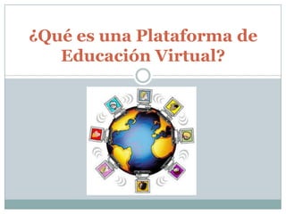 Este documento describe las características y herramientas de las plataformas de educación virtual. Explica que una plataforma virtual es un entorno de aprendizaje en línea que permite la comunicación y colaboración entre estudiantes y docentes. Incluye ejemplos de plataformas como Moodle, Blackboard y Edmodo. También compara diferentes plataformas según sus características de comunicación, productividad y participación estudiantil.