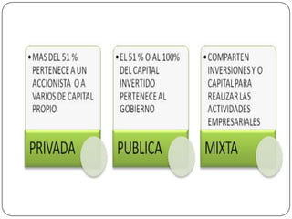 El documento presenta una introducción a los conceptos básicos de empresa, capital, acciones, accionistas y directivos. Explica que una empresa es una unidad organizada para actividades industriales, mercantiles o de servicios con fines de lucro. Define el capital como los valores que generan ingresos para la empresa y las acciones como los títulos que representan las partes de capital de cada accionista. Además, menciona que la estructura básica de una empresa lucrativa incluye una junta directiva.