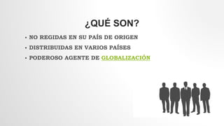Las empresas multinacionales son entidades que operan en varios países, buscando maximizar beneficios a través de estrategias globales y estructuras descentralizadas. A lo largo de la historia, han evolucionado desde los primeros antecedentes en el comercio hasta desempeñar un papel crucial en la economía moderna, generando tanto empleo como críticas por su explotación laboral. La creación de una multinacional requiere un sólido plan empresarial, comprensión del mercado y las condiciones locales, así como una cuidadosa selección del equipo y financiación.