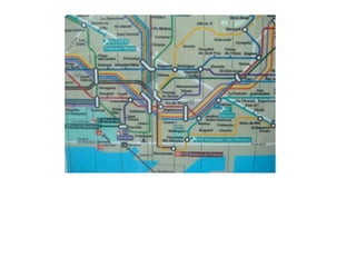 El documento presenta una serie de preguntas y actividades sobre la ciudad de Barcelona. Se mencionan lugares como Las Ramblas, el parque y monumentos que se pueden ver en un video. También incluye preguntas sobre los medios de transporte que la gente usa para ir al trabajo y a la escuela, y cómo los estudiantes se desplazan a diario y por qué eligen diferentes opciones.