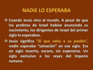 El documento discute el impacto histórico del nacimiento de Jesús, argumentando que, a pesar de su importancia, no se conocía la fecha exacta de su nacimiento, lo que llevó a confusiones en el calendario. Dionisio el Exiguo, en el año 532 d.C., propuso un nuevo sistema de datación basado en el nacimiento de Jesús, pero cometió errores que resultaron en un desfase de siete años en nuestra cronología moderna. La obra enfatiza que Jesús es el eje central de la historia, diferenciando el tiempo antes y después de su llegada al mundo.