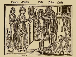 El documento presenta varios poemas y extractos literarios que tratan sobre el amor y la muerte. Los textos describen el amor apasionado entre parejas y cómo este puede sobrevivir más allá de la muerte. Uno de los poemas anónimos narra la visita de la Muerte a un enamorado durante la noche. Otro poema de Bécquer afirma que aunque el cuerpo muera, el amor permanecerá.