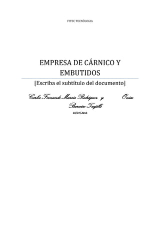 Este documento describe los procesos y maquinaria utilizados en la industria de embutidos. Explica las etapas de masajeo/tanderización, molido, amasado, embutido, cocción, enfriamiento, tajado y curado de productos embutidos. También describe brevemente los diferentes tipos de maquinaria empleada en cada etapa como inyectoras, embutidoras, mezcladoras, hornos y autoclaves.