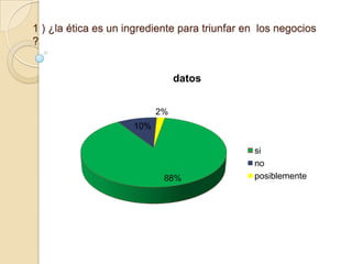 La ética es un ingrediente importante para el éxito de los negocios y la responsabilidad social de las empresas. La ética empresarial significa actuar de manera honrada y respetuosa hacia los empleados y la sociedad. Aunque la ética puede limitar algunas oportunidades, también beneficia a las empresas a largo plazo al fomentar la confianza. La ética empresarial forma parte de las ciencias empresariales.