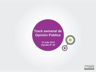 Este documento presenta los resultados de una encuesta de opinión pública realizada entre el 10 y 11 de julio de 2014. Muestra que la aprobación presidencial de Michelle Bachelet es de 52% y su desaprobación de 32%. La mayoría cree que el área que requiere mayor esfuerzo es la salud (27%). La reforma educacional es apoyada por el 51% e impopular modificar el sistema binominal sin aumentar el número de parlamentarios.