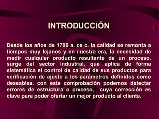 El documento trata sobre la evaluación de la calidad en el sector de la salud. Presenta conceptos clave como calidad, satisfacción del usuario y dimensiones de la calidad. Explica la importancia de evaluar la calidad para garantizar una atención óptima y los requisitos básicos como compromiso, formación e información. Finalmente, propone métodos para identificar problemas como lluvia de ideas, grupos focales y encuestas.