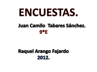 El documento presenta los resultados de una encuesta sobre el uso de abonos químicos vs. abonos orgánicos en la agricultura. La mayoría de los encuestados están de acuerdo con implementar abonos orgánicos y creen que pueden evitar enfermedades, aunque muchos no conocen métodos específicos de elaboración de abonos orgánicos o las funciones de algunos ingredientes como las cascaras de huevo o plantas aromáticas.