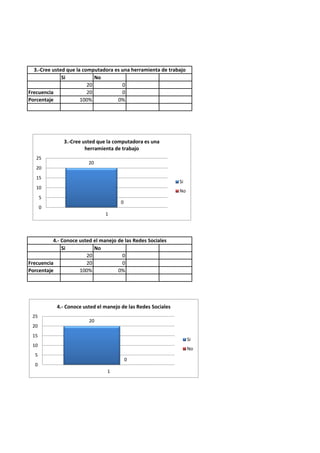 Un estudio realizado a 20 personas encontró que la mayoría considera importante la tecnología en la actualidad, cuenta con correo electrónico, computadora e internet, y cree que los niños están inmersos en la tecnología. Sin embargo, había opiniones divididas sobre si la tecnología es perjudicial para los humanos y sobre el significado del término TICs.