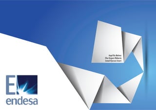 El documento propone cambiar la percepción pública de Endesa convirtiéndola en una "Lovemark". El problema es la desconfianza de los consumidores hacia las eléctricas debido a la falta de transparencia y el aumento de las facturas. La verdad es que las personas necesitan saber sobre temas que les afectan. El reto es mejorar la transparencia en la facturación y patrocinar parques biosaludables donde el ejercicio genere energía que se descuente de la factura.