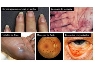 destrucion valvular;5,aneurisma micotico del seno de valsalva; 6, fistula aortica; 7,
